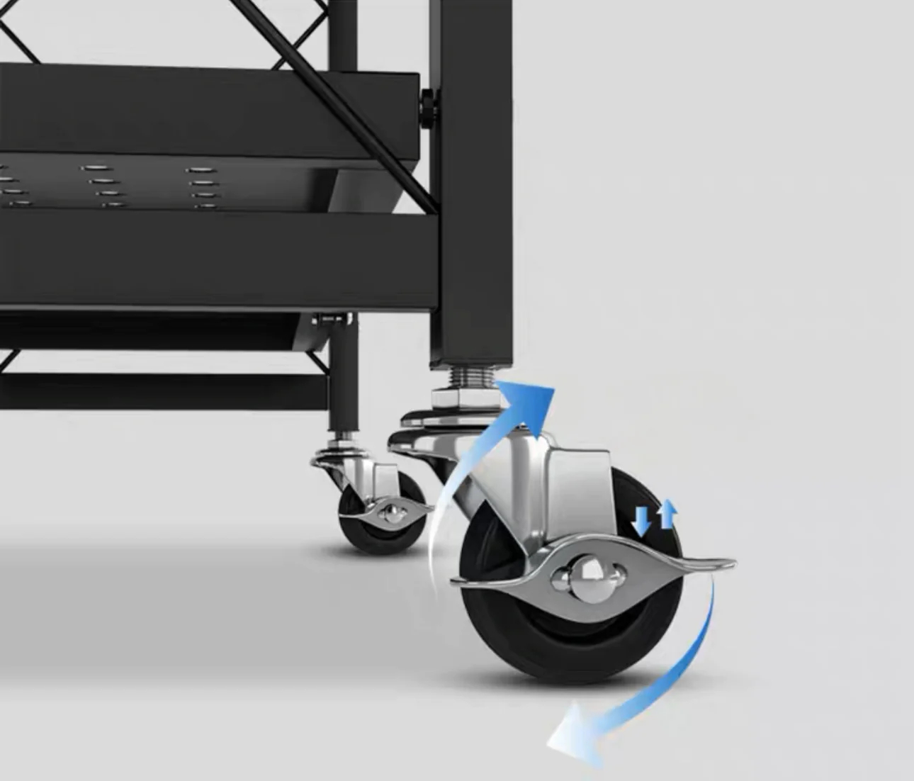 De alta movilidad por sus ruedas de 360°, además cuenta con frenos para mantenerlo en su lugar y son de plásticos ABS lo cual son super resistentes a los golpes.
