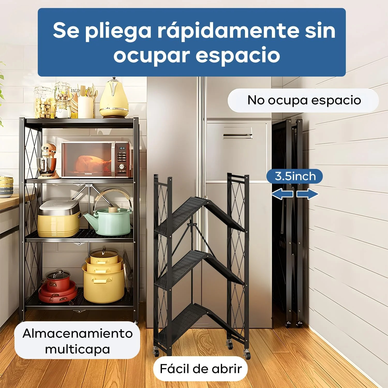 ??? ¡Organiza y maximiza tu espacio con nuestro estante de almacenamiento de 4 niveles plegable! ?✨ Perfecto para verduras frescas, objetos del hogar, suministros de oficina, despensa y mucho más. ???