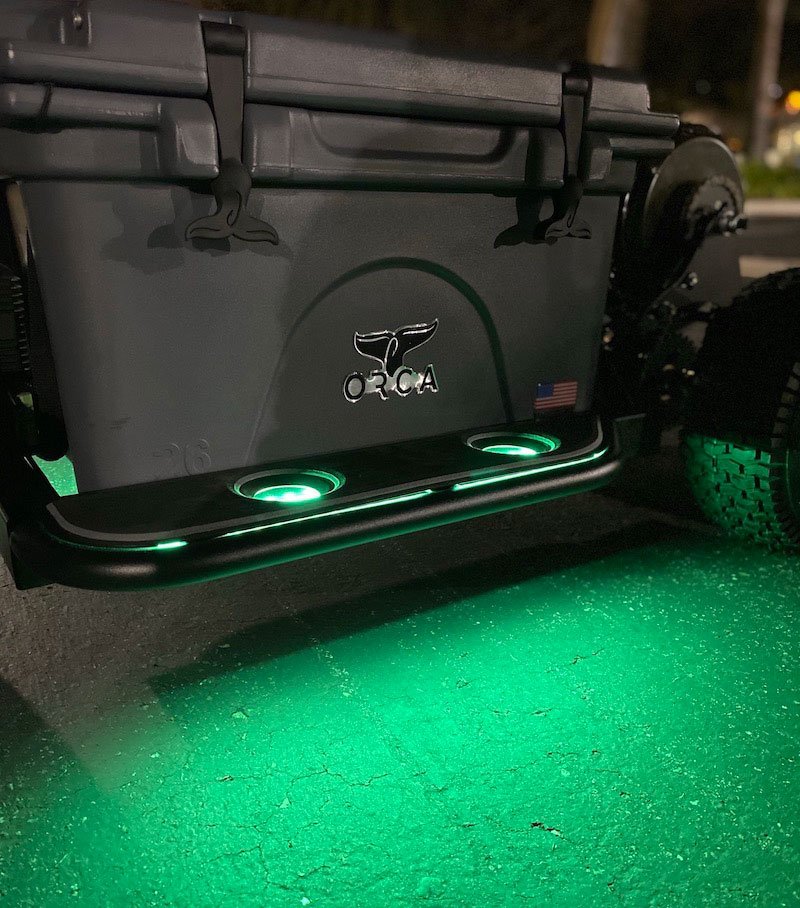 Estas luces vibrantes iluminan el suelo debajo del kart, creando un brillo cautivador que mejora la estética de tu KoolerKart y lo hace destacar donde quiera que vayas. KoolerKart también incluye una potente caja de luz LED para brindar iluminación adicional durante las aventuras nocturnas. Estas luces LED de alto rendimiento garantizan una visibilidad óptima en condiciones de poca luz, lo que le permite navegar con seguridad