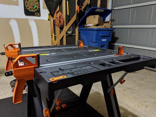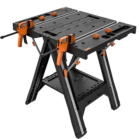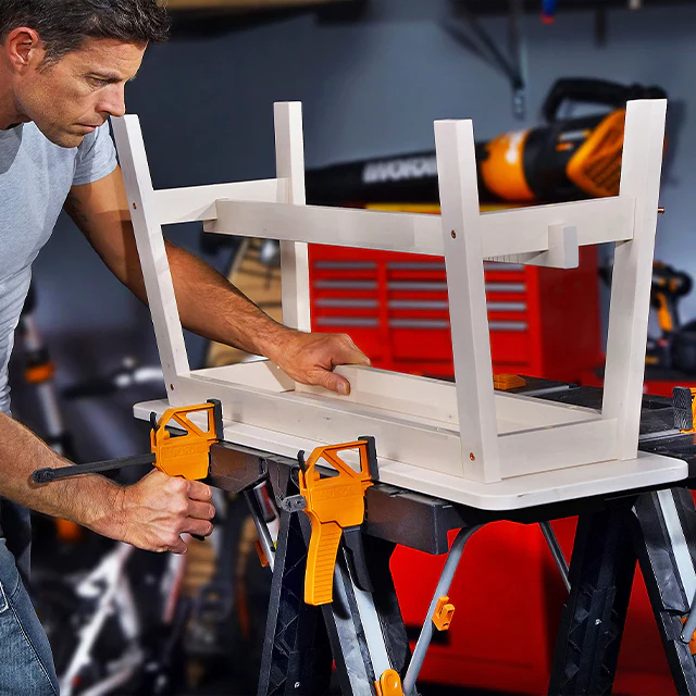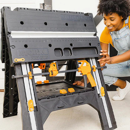 Este banco de trabajo es resistente y confiable e incluye (2) abrazaderas rápidas de 24" que sujetarán de manera segura cualquier proyecto que pese hasta 301 lbs. de fuerza de sujeción.