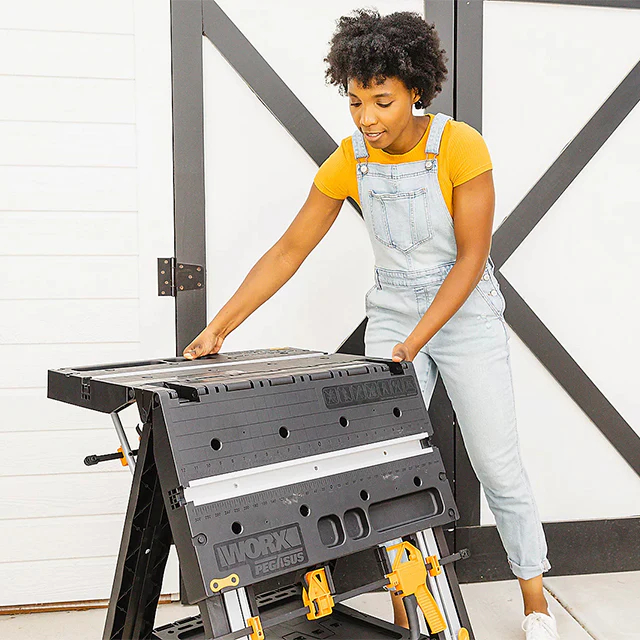 Puede contener hasta 300 libras. Como banco de trabajo, puede soportar hasta 1000 libras. Como un caballete. Y convertir entre los dos es fácil. Crea un contador de trabajos completo conectando 3 o más Pegasus juntos. Ya sea que su lugar de trabajo o taller sea espacioso o estrecho.