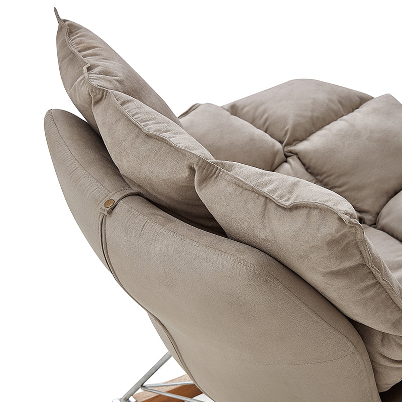 El pensado diseño de cierre a presión permite quitar el cojín de la Silla Mecedora de Gamuza Salo.