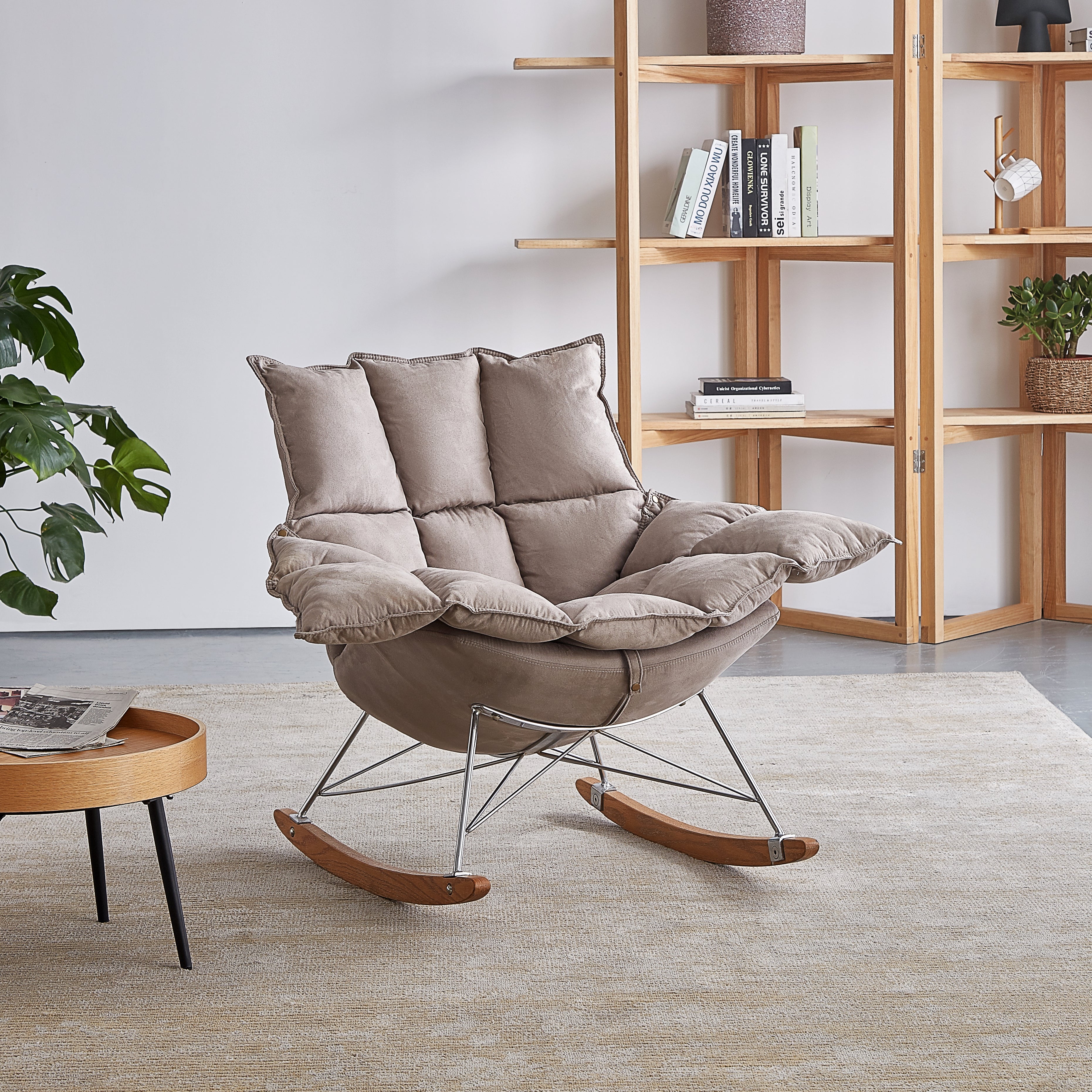 Con un diseño audaz, puedes mecerte en un estado de relajación hipnótica con la Silla Mecedora de Ante Salo Relaxing. Esta silla de acento tiene un asiento amplio, con un respaldo ergonómico y un cojín de plumas, tapizados en tela rellena de espuma con ante. Puedes consentirte en esta relajación hipnótica incluso si el espacio es limitado. Te brinda una comodidad superior durante largas horas de balanceo, lectura o relajación.
