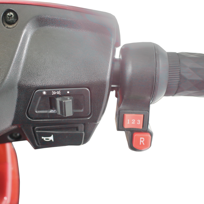 Arranca de forma sencilla con un cómodo acelerador giratorio. Para la marcha atrás el SCOOTER GIO TRON™ cuenta con señal de marcha atrás para que las personas de alrededor lo puedan ver.