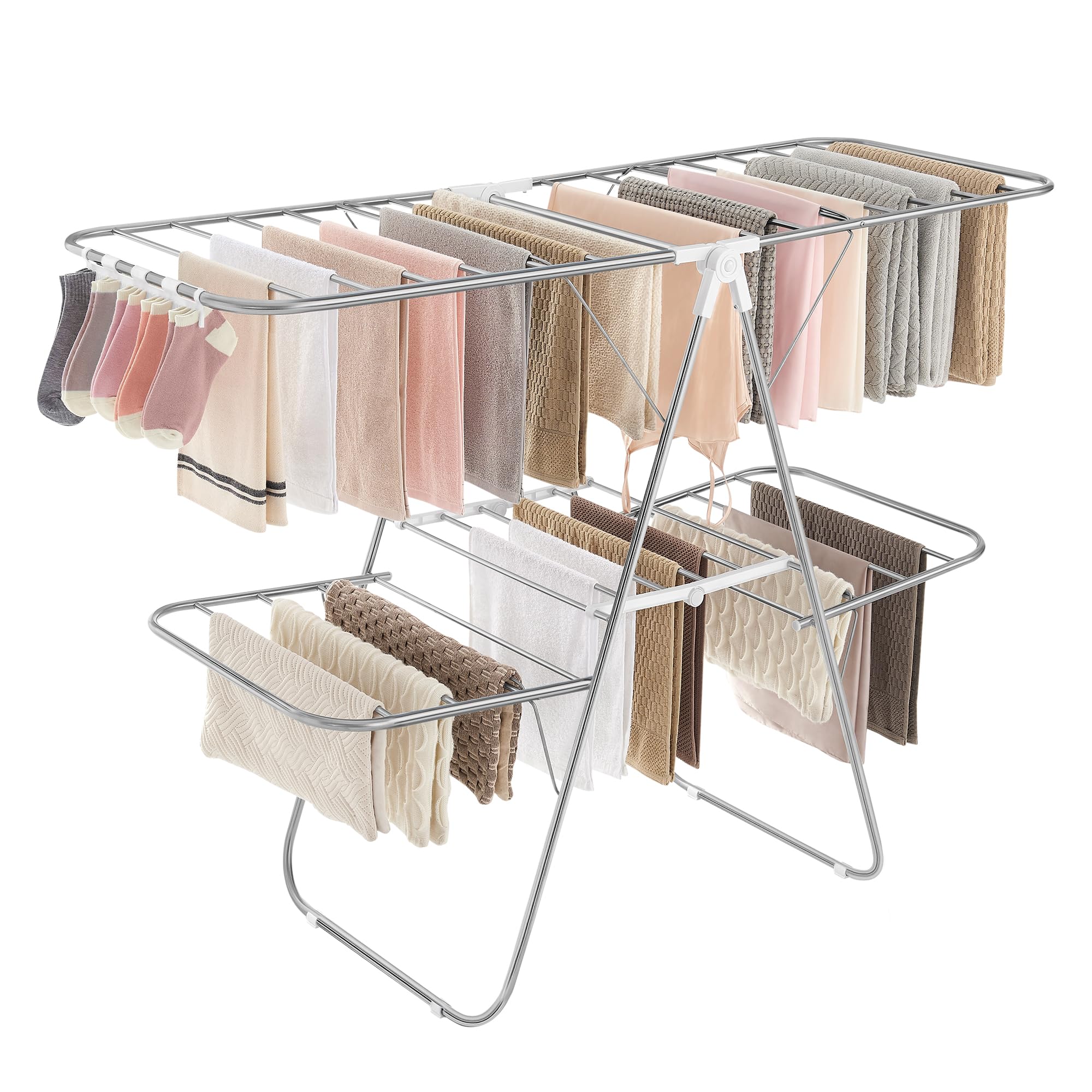 - Las 2 alas superiores se pueden ajustar a 3 alturas diferentes para airear pantalones y sábanas.