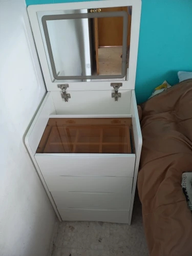 - Espejo con luz LED abatible: el juego de tocador con tira de espejo con luz LED alrededor de las esquinas. A diferencia del espejo común, la luz LED puede aclarar la imagen. Simplemente presione el botón del interruptor en el espejo y la luz se encenderá. Se le permite cambiar fácilmente entre luz blanca, cálida y natural para satisfacer sus diferentes necesidades. Con el diseño abatible, el espejo se puede ocultar para evitar mejor la contaminación por polvo.