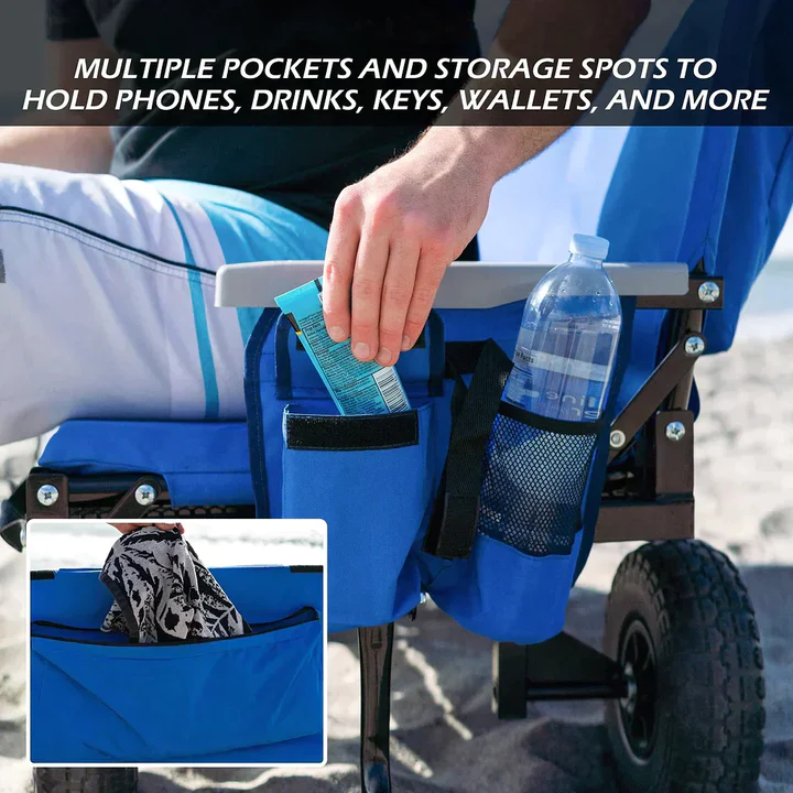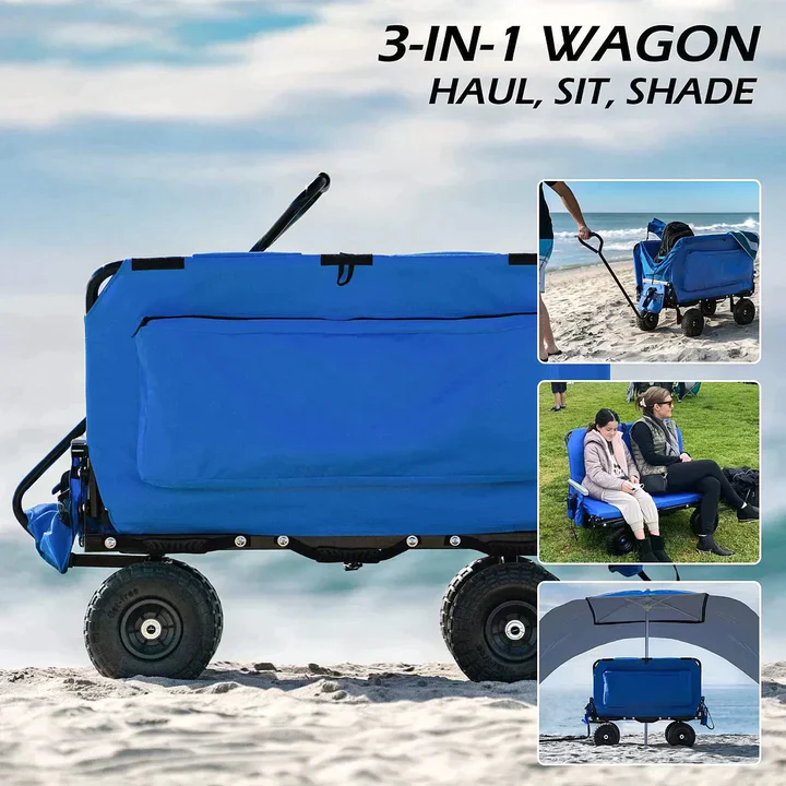 Más de 11 metros cúbicos de espacio de carga en estos vagones plegables y resistentes. La red para equipaje incluida facilita la carga y descarga. Un bolsillo trasero extra grande y soportes para teléfono y botellas en el lateral brindan un amplio espacio de almacenamiento. ¡Lleva juguetes, tablas de surf, toallas, hieleras, cañas de pescar, balones de fútbol, mantas y más! Cochecito perfecto para juegos de pelota, el parque, arroyos, playas, camping, pesca, dondequiera que lleve sus sillas plegables y su equipo.