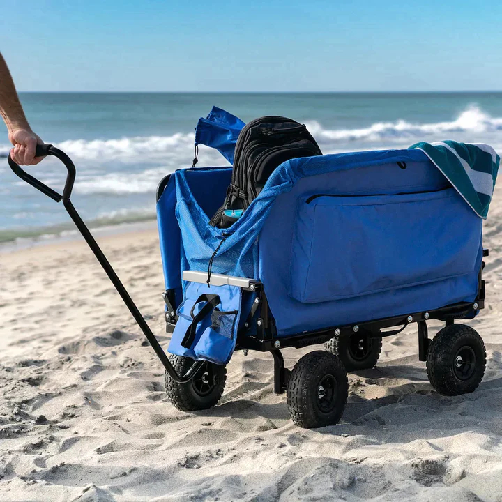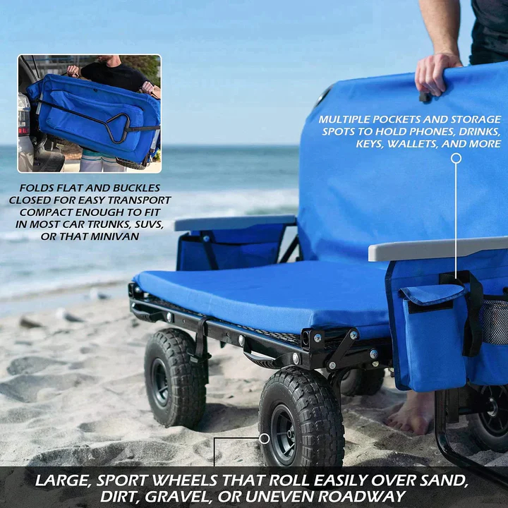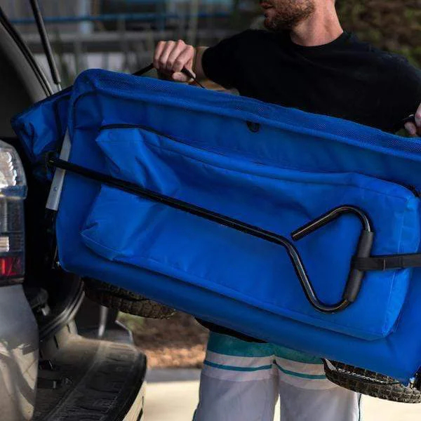 Sillas de playa y carritos con ruedas diseñados y desarrollados en California. Miles de clientes de deportes y actividades al aire libre en los 50 estados y más de 40 países de todo el mundo lo disfrutan. El Easy Wagon cabe fácilmente en cualquier automóvil o SUV estándar, ya que se pliega casi por completo. Se convierte instantáneamente en un carrito simplemente tirando hacia arriba de los lados del carrito.